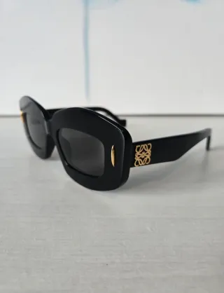 Elegantes gafas de sol Loewe Screen con un diseño llamativo. - Montura negra. - Detalle dorado en las patillas. - Logo de Loewe en dorado.