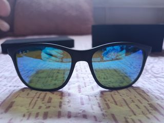 Ray Ban 4330-CH 601-S/A1 56-17 145 Está en perfectas condiciones, la funda tiene la zona del botón un poco dañada. Gafas de sol Ray Ban 4330-CH, en color negro y azul. Son unas gafas elegantes y modernas.