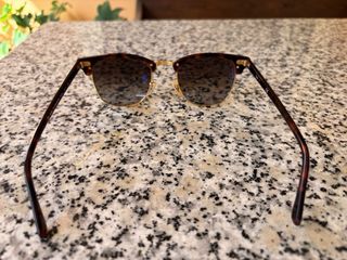 Gafas de sol Ray-Ban con un diseño moderno y elegante. Nuevas sin ningún uso. - Montura de acetato con estampado de carey. - Lentes degradadas en tonos marrones.