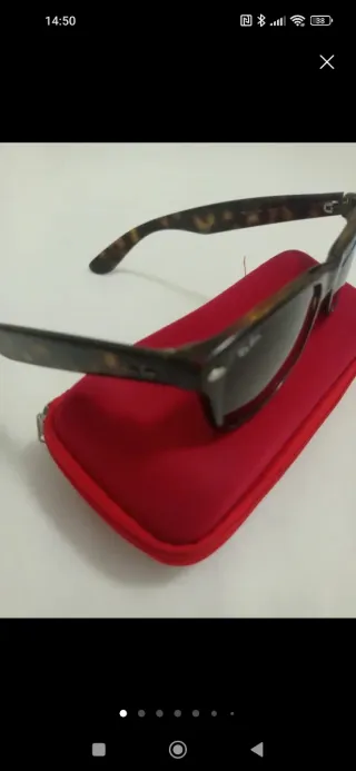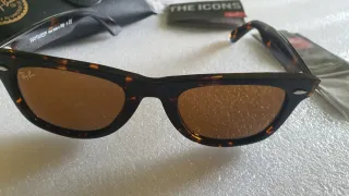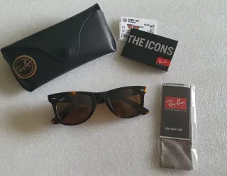 Gafas de sol Ray-Ban modelo Wayfarer. - Montura con estampado de tortuga. - Lentes de color marrón. - Incluye funda protectora. - Incluye paño de limpieza.