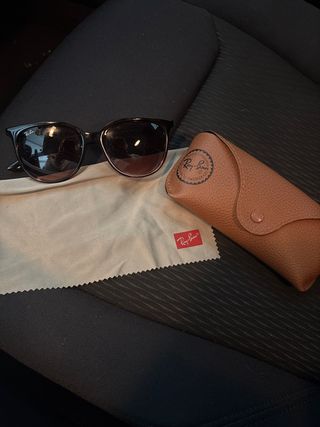 Gafas de sol Ray-Ban en tono marrón, un accesorio clásico y elegante. - Incluye funda protectora. - Paño de limpieza con logo.