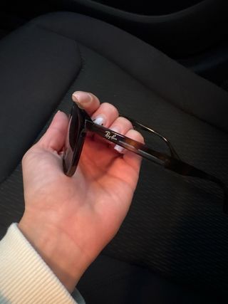 Gafas de sol Ray-Ban con un diseño clásico y elegante. - Montura con acabado tortuga. - Lentes oscuras. - Detalles dorados en la montura.