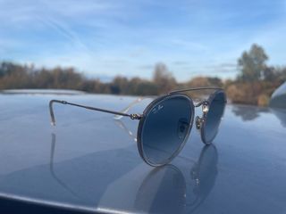 Gafas de sol Ray-Ban Aviator unisex, en color azul y plata. Son gafas elegantes y en buen estado. - Montura de metal. - Lentes con degradado de azul. - Incluye estuche y paño de limpieza