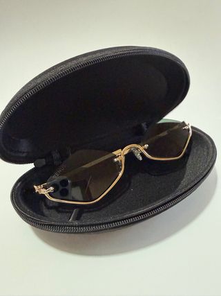 Gafas de sol en excelente estado, casi nuevas. Vienen con su funda protectora. - Diseño moderno y elegante. - Lentes oscuras para protección solar. - Incluye funda rígida.