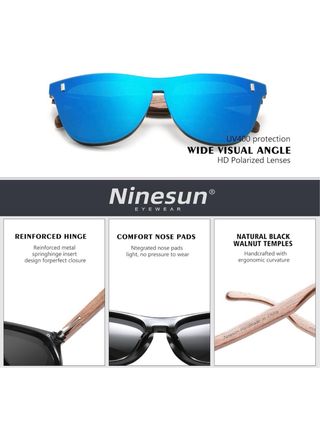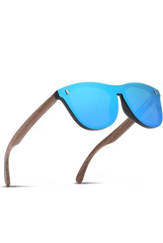 Gafas de sol Ninesun con lentes polarizadas y montura de madera. - Lentes de color azul. - Montura de madera en tono marrón.