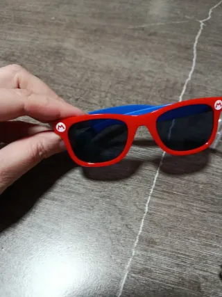 Divertidas gafas de sol para niños con diseño de Mario Bros y otras de Spiderman. - Montura roja y patillas azules y la otra es negra. - Incluye funda transparente con detalles de superhéroes, la funda es de las gafas negras.