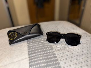 Gafas de sol Ray-Ban con montura dorada y lentes negras. - Diseño clásico y elegante. - Incluye funda protectora. Las vendo porque se me han quedado un poco estrechitas No tenía más fotos en el móvil, pero si estás interesadx, pregunta y te envío lo que necesites :)