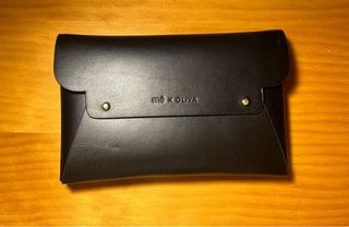 Elegante estuche para gafas de cuero. - Diseño minimalista. - Cierre con broche. - Logo grabado mō x OLIVA.