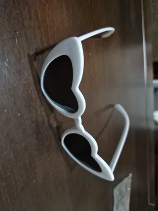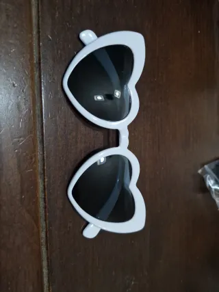 9 Gafas de sol con un diseño divertido en forma de corazón. - Montura blanca. - Lentes oscuras. 1 gafas de regalo en negro y estilo rayban. Todas nuevas en su envoltorio.