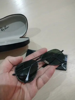 Gafas de sol Ray-Ban impecables con lentes polarizadas y montura negra. No tiene ningún tipo de marca, ni arañazos ya que a penas se han usado. - Lentes de color verde. - Incluye funda y paño de limpieza.