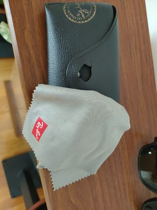 Gafas de sol Ray-Ban con montura gris y lentes negras. Incluyen funda. - Montura de color gris. - Lentes de color negro. _estan un poco ralladas en el cristal izquierdo.