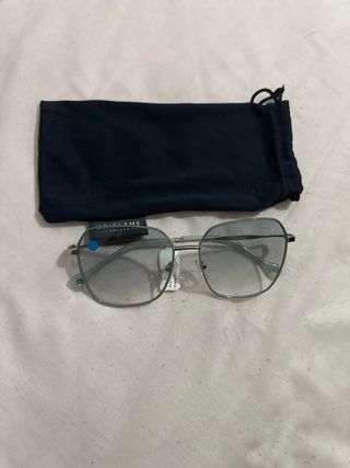 Gafas de sol Oriflame Archipelago polar, con montura plateada y lentes azules. Se incluyen las gafas y su funda protectora. Las gafas tienen un diseño elegante y moderno. - Montura de metal. - Lentes con degradado de color. - Funda protectora incluida.