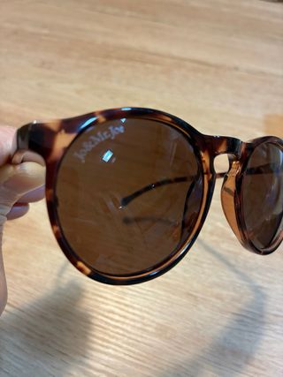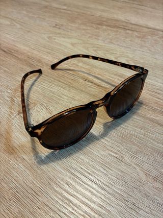 Gafas de sol con un diseño moderno y elegante. - Montura estilo tortoise. - Lentes con tinte marrón. - Tiene un pequeño defecto en el cristal izquierdo casi imperceptible.