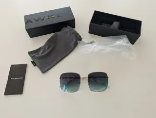 Gafas de sol de la marca Hawkers con montura dorada y lentes degradadas en tonos verdes. A estrenar. Incluye funda y caja original.