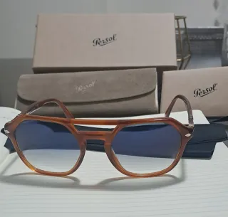 Gafas de sol Persol Tierra de Siena, lentes azules, fabricadas a mano - Montura de acetato. - Lentes degradadas.