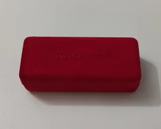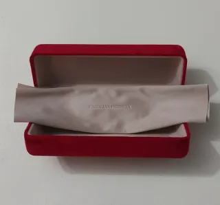Funda original de la marca "Carolina Herrera". Tamaño mediano, para gafas de sol medianas o de vista. Rígida, con fleje. Nueva, sin usar. Incluye gamuza original para limpiar las gafas.