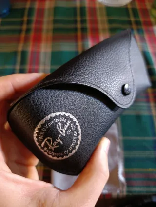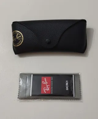 Funda original de la marca "Ray-Ban". Rígida, con cierre de broche. Nueva, sin usar. Incluye gamuza original para limpiar las gafas.
