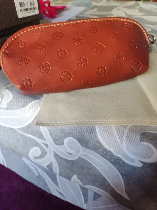 Funda para gafas con un bonito diseño grabado. - Material: Cuero - Color: Marrón - Adorno: Grabado de flores