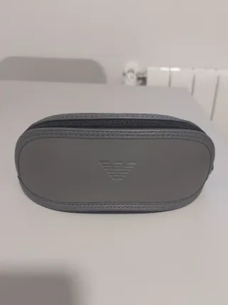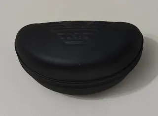 Estuche de cremallera original de la marca "Emporio Armani". Rígido y sin estrenar. Para gafas de sol de tamaño grande o con mucha curva. Incluye gamuza original de tamaño extra grande para limpiar las gafas.