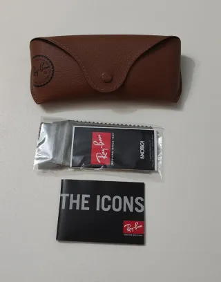 Funda original de la marca "Ray-Ban". Para gafas de sol iconos de la marca. Rígida, con cierre de broche. Nueva, sin usar. Incluye gamuza original para limpiar las gafas y caja de cartón con el logotipo de la marca.