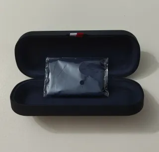 Funda original de la marca "Tommy Hilfiger". Para gafas de vista. Rígida, con fleje. Nueva, sin usar. Incluye gamuza original para limpiar las gafas.