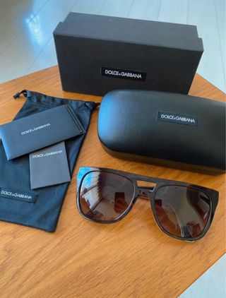 Gafas de sol de la marca Dolce & Gabbana con un diseño moderno y elegante. - Montura de acetato con acabado tortuga. - Lentes con protección UV. - Incluye funda rígida y bolsa de tela.