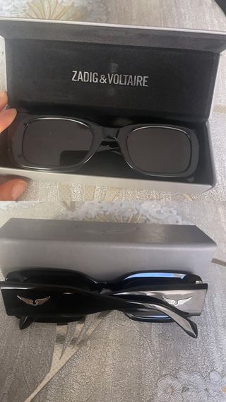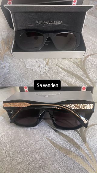 Elegantes gafas de sol Zadig & Voltaire. - Montura de acetato negro. - Detalles metálicos dorados en las patillas. - Lentes oscuras.