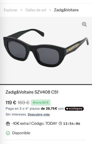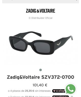 Gafas de sol Zadig & Voltaire modelo SZV372-0700. - Diseño moderno y elegante. - Montura negra. - Lentes oscuras.