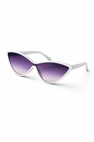 Gafas de sol con un diseño moderno y protección UV400. - Montura de color blanco. - Lentes con degradado de morado a transparente. - Con estuche