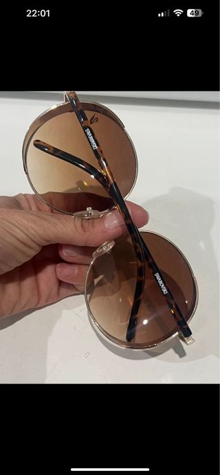Gafas de sol con un diseño redondo y moderno. - Montura dorada. - Lentes degradadas en tonos marrones. - Detalle del logo de Swarovski en una lente. son originales,absengase de ofertas ansurdas