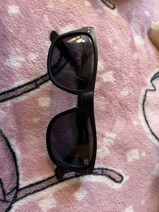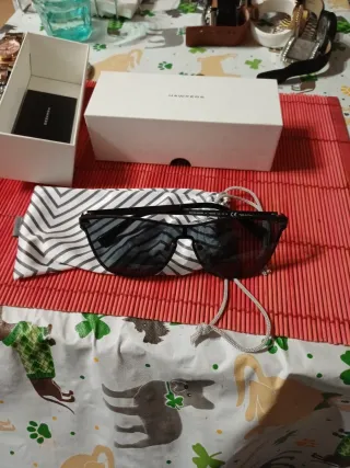 Gafas de sol con montura negra y lentes oscuros - Diseño moderno y elegante. - Montura resistente. - Lentes con protección UV. -Fundas caja y tiquet de compra -Sin arañazos y muy bien cuidadas