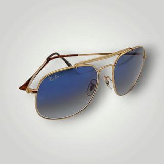 Gafas de sol Ray-Ban con un diseño moderno y llamativo. - Montura dorada. - Lentes de color azul. - Estilo Round Double Bridge.
