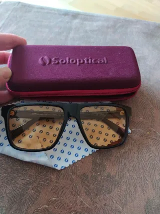 En perfecto estado. Compradas en óptica. Patillas y cristales perfectos, solo pequeñisimos roces por dentro de la patilla (casi inapreciables por dentro, y nada apreciable por fuera).