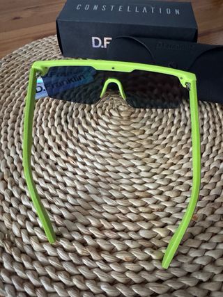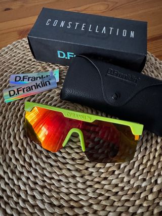 Gafas de sol D.Franklin modelo Constellation. - Montura de color verde neón. - Lentes con efecto espejo en tonos rojos y naranjas. - Incluye funda protectora y pegatinas de la marca.