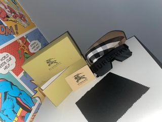 Gafas de sol Burberry, elegantes y en perfecto estado. - Incluye estuche y paño de limpieza. - Diseño moderno y sofisticado. - Montura de color negro y detalles marrones.