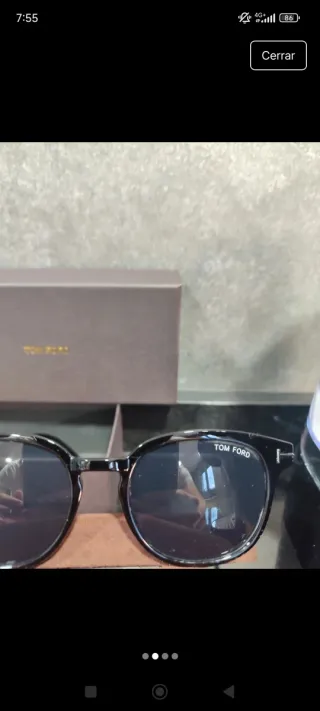 Elegantes gafas de sol Tom Ford con montura negra y lentes negras. Incluyen su estuche original. - Montura de acetato. - Lentes con protección UV. - Diseño moderno y sofisticado.
