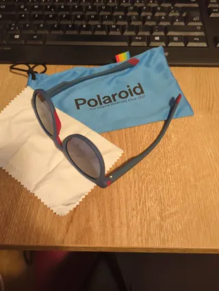 Gafas de sol infantiles de la marca Polaroid. - Montura azul. - Detalle en las patillas en color rojo. - Incluye funda protectora azul con el logo de Polaroid.