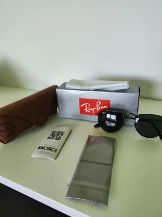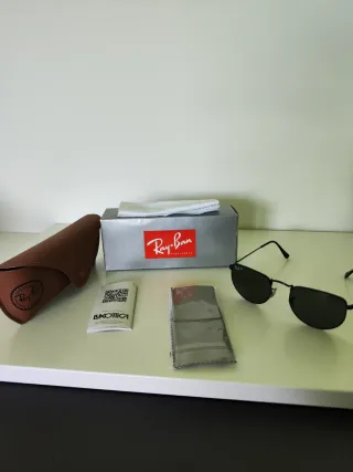 Se venden gafas de sol Ray-Ban ORB3958. Incluyen funda protectora y paño de limpieza. No se han usado nunca. Edición que ya no se encuentra. - Montura de metal. - Lentes con protección UV. - Incluye caja y paño de limpieza original (sin usar). -Black/Polar Green. S:50 T:145 RX:YesStd