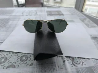 Gafas de sol estilo aviador Ray-ban originales con montura dorada y lentes verdes. - Montura metálica dorada. - Lentes de color verde. Sin apenas uso, están como nuevas. Vienen con su funda/estuche y su paño de limpieza. El estuche tiene el logo gastado y un pequeño defecto a la altura del broche (cierra perfectamente)