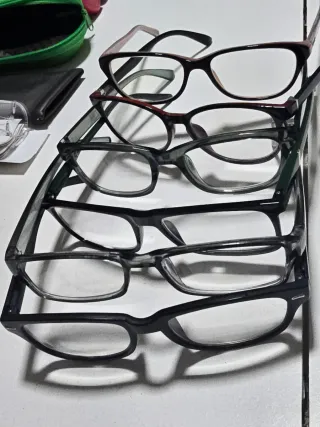 Lote de 6 gafas estilo casual, todas en perfecto estado y con sus estuches incluidos. - 1 par original de marca Ralph Lauren, diseño elegante y moderno. -5 pares adicionales de estilo casual en varios colores, ideales para uso diario o para cambiar las monturas. - Monturas resistentes - Diseño moderno - Sin daños ni roturas - Ideales para usar o cambiar cristales - Precio increíble por el lote completo: 29,99 € Se venden juntas.