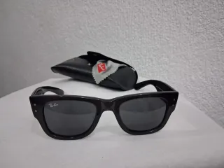 Gafas de sol Ray-Ban con montura negra. - Diseño clásico y elegante. - Lentes oscuras para protección. - Incluye funda protectora.
