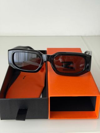 Gafas de sol elegantes y modernas. - Montura negra. - Lentes con un ligero tono azul. - Perfecto estado.