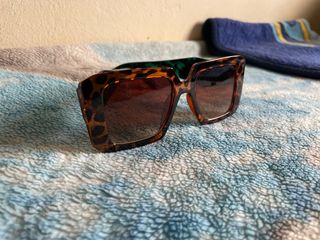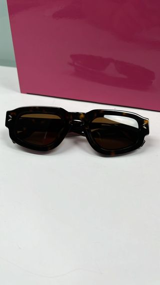 Gafas de sol con un diseño llamativo y montura estilo carey. - Montura con estampado de carey y detalles en verde. - Lentes con degradado. - Forma cuadrada.
