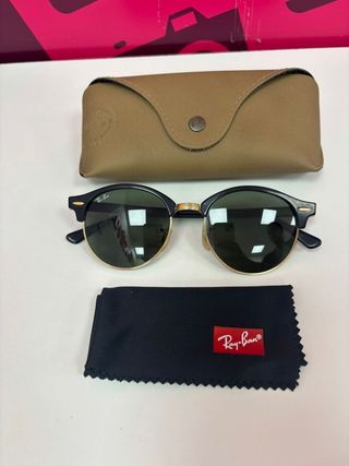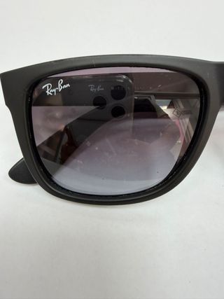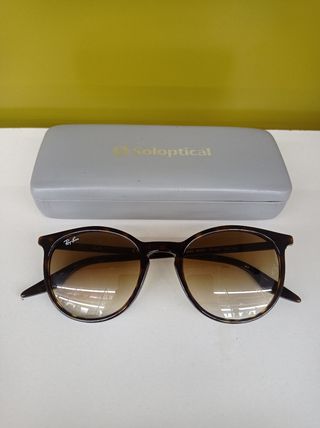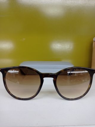 Gafas de sol Ray-Ban polarizadas, con un diseño moderno y elegante. Muy bien cuidadas. Lo único no original son los protectores de las patillas que estaban estropeados y los cambié por unos de silicona, son incluso más cómodos y no se mueven nada. La funda tambien original con desperfecto únicamente en la apertura. - Montura con acabado tortuga. - Lentes con protección. - Logo de la marca en la lente.