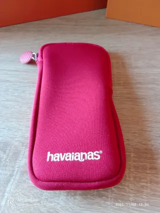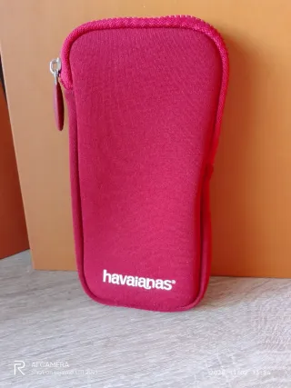 Funda para gafas de sol de la marca Havaianas. - Color rojo vibrante. - Cierre de cremallera.
