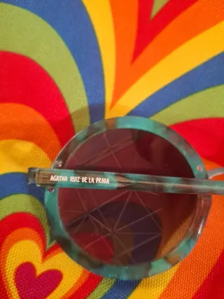 Gafas de sol con un diseño llamativo y original. - Montura redonda. - Combinación de colores vibrantes y detalles en turquesa.