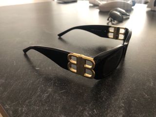 Elegantes gafas de sol Balenciaga con un diseño moderno. Están como nuevas. - Montura en color negro. - Detalles metálicos en tono dorado en las patillas. - Lentes oscuras.
