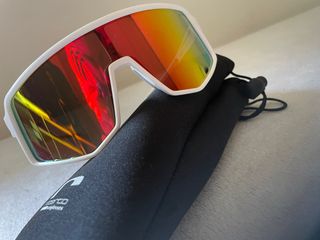 Gafas de sol de la marca Roberto Martín con un diseño moderno y llamativo. Como Nuevas - Montura de color blanco. - Lentes con acabado multicolor y efecto espejo.