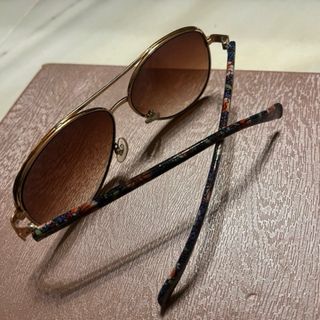 Gafas de sol con un diseño moderno y lentes tintadas. - Montura de color morado y marrón. - Lentes de color marrón. - Incluye funda protectora.