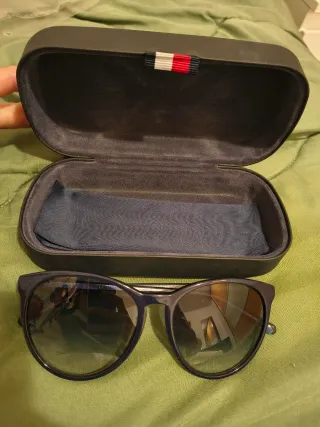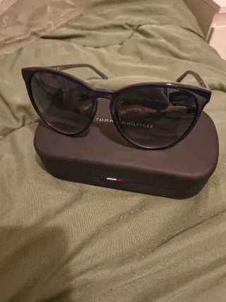 Gafas de sol de la marca Tommy Hilfiger con un diseño moderno. - Montura en color azul. - Lentes oscuras.